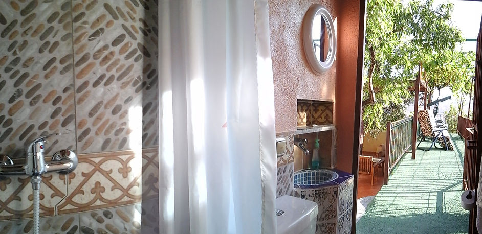 Ademas tiene un pequeño y coqueto baño, pero no por eso menos funcinal, dotado de ducha, lavabo y wc, con muy buenas vistas a traves de su peculiar ventanita.